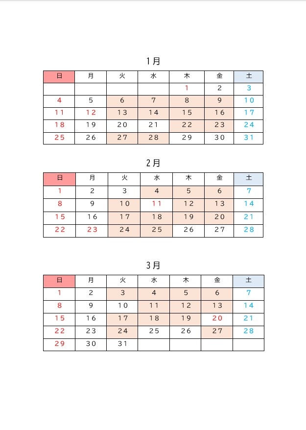 ※白背景は休講日です